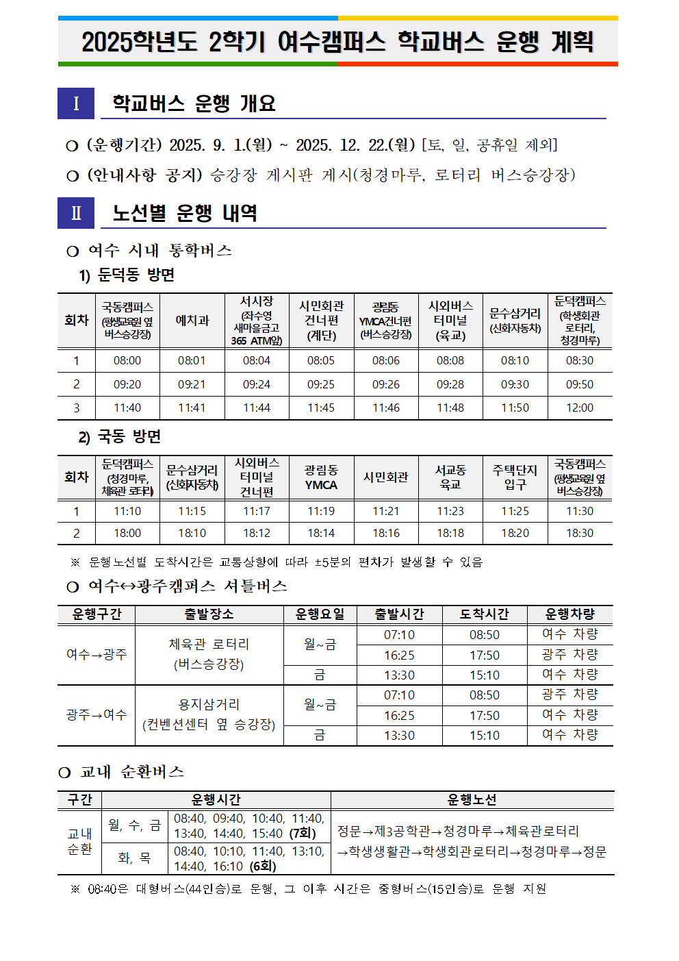 2025학년도 2학기 학교 버스 운행 계획 안내
